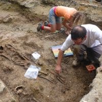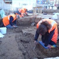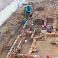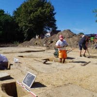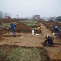 Onroerend ErfgoedNaar aanleiding van de herinrichting van het kerkhof rond de Sint-Michielskerk en het achterliggende Eilandbos in Sint-Lievens-Houtem, volgden de archeologen…