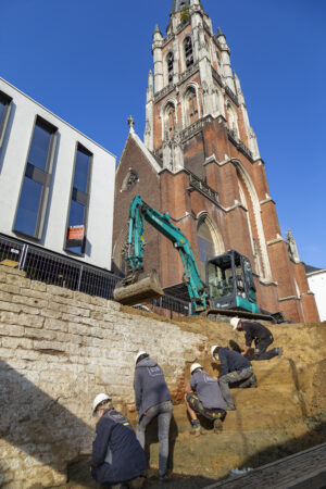 Om een inschatting te kunnen maken van de restanten in de ondergrond en de bewaring ervan te bestuderen, is in het voorjaar van 2020 eerst een vooronderzoek gebeurt. In het najaar van 2020 en het voorjaar van 2021 is reeds een deel van het plein onderzocht. Het onderzoek leverde onschatbare informatie op over de middeleeuwse en postmiddeleeuwse verdedigingswerken van de stad Aalst. Ook een bunker uit WOII kwam aan het licht.