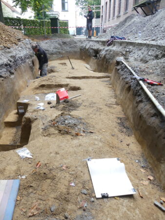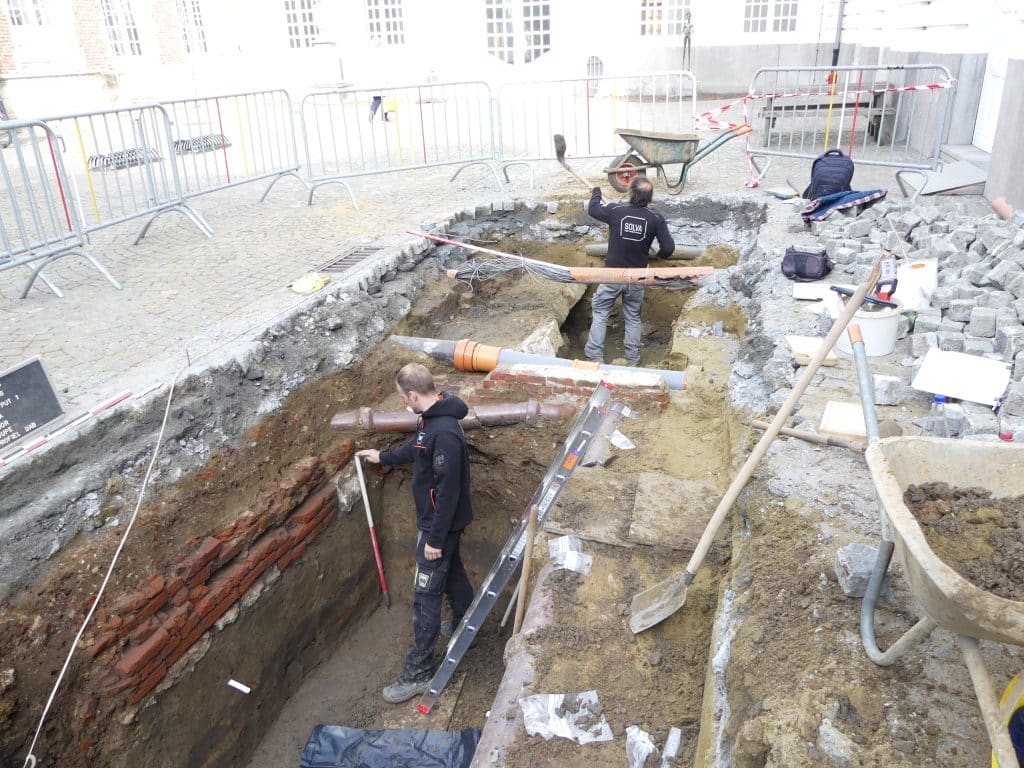 In opdracht van Stad Aalst voert SOLVA een archeologisch vooronderzoek uit op de Pupillensite-Oud Stadhuis. De opgravingen kaderen in de herwaardering en herbestemming van de zone tussen het Oud Stadhuis en de voormalige Pupillenschool. Doel van het onderzoek is om nu al een inschatting te kunnen maken van eventueel aanwezige archeologische sporen. Uit historisch en cartografisch onderzoek is geweten dat het gebied vanaf ca. 1200 gelegen is binnen de laatmiddeleeuwse stadsomwalling van Aalst. Aan zuidelijke zijde grenst het gebied aan de Grote Markt, waar eerder al sporen van bewoning uit de 12de eeuw zijn terug gevonden. De oudste vermeldingen van woningen langs de Grote Markt dateren uit de late 14de en vroege 15de eeuw. Aan het einde van de 16de eeuw laat het bestuur van het Land van Aalst enkele woningen omvormen tot een landhuis. Zeker vanaf de eerste helft van de 18de eeuw bevond zich achter het landhuis ook een landschapstuin. Ook de andere zones zijn minstens sinds de 15de eeuw aan de straatkant bebouwd. In het verlengde van de landschapstuin van het landhuis bouwt men in de tweede helft van de 18de eeuw een stoeterij, die later dienst zal doen als mannen- en vrouwengevangenis. Tussen 1825 en 1859 worden de gebouwen door het Ministerie van Justitie omgevormd tot een militaire gevangenis. Daarna doet het gebouw dienst als “Ecole des enfants de troupe”, dat in 1883 herdoopt wordt tot “Ecole des Pupilles de l’Armée”. Tussen 1880 en 1907 verrijst uiteindelijk het gebouwcomplex van de ‘Pupillenschool’ zoals het er vandaag nog steeds staat. In totaal zullen de archeologen acht proefsleuven verspreid over het projectgebied onderzoeken. Doordat verschillende zones binnen het gebied al sinds de late middeleeuwen onbebouwd zijn gebleven bestaat de kans dat er ook oudere sporen bewaard zijn gebleven.